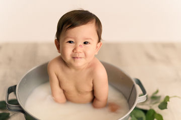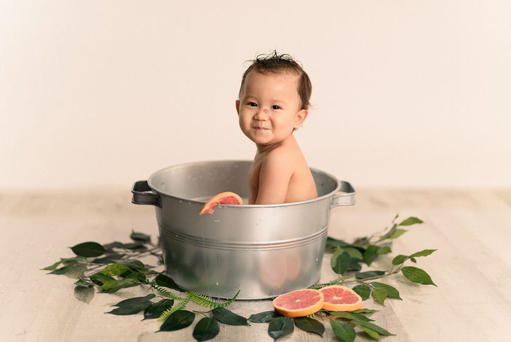 Otro ejemplo de que las sesiones con baño son de lo mejor. Este pequeñín lo disfrutó de principio a fin, preparamos el agua a la temperatura ideal y luego fue el momento de baño más divertido. Un bonito recuerdo para tu bebé